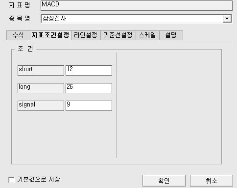 영웅문에서 macd 보조지표 설정으로 들어가면